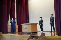 校歌斉唱の後、佐藤校長から「新年度が始まり、それぞれ気持ちを切り換えて頑張ってほしい」こと、「新入生を暖かく迎え入れてほしいこと」などが話されました。続いて教務部長から「環境を整えて学習・学校生活を充実させる」こと、生徒部長から「学校生活、スマホ、事故を起こさない」ことなどが話されました。